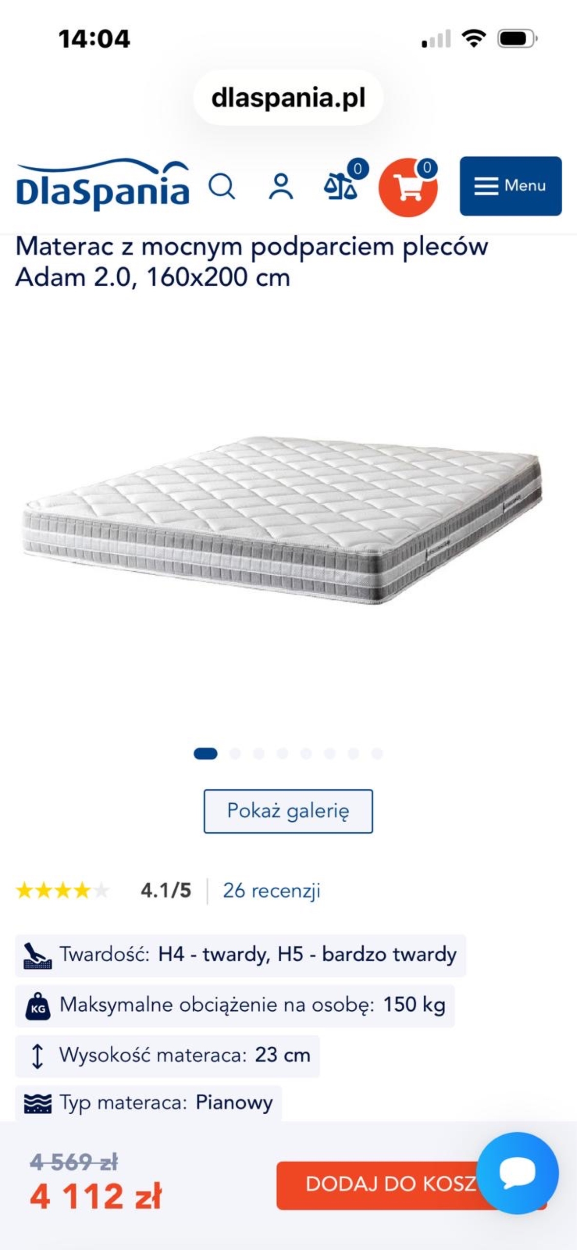 | Twardość materaca | H4 |