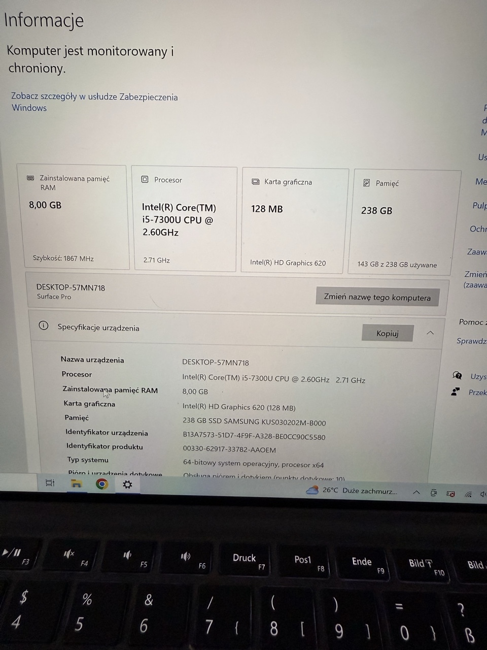 | Model procesora | Intel Core i5-7300U |