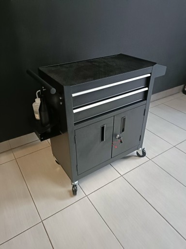 Wielofunkcyjna stacja z 2 szufladami, pojemną szafką i blatem roboczy.