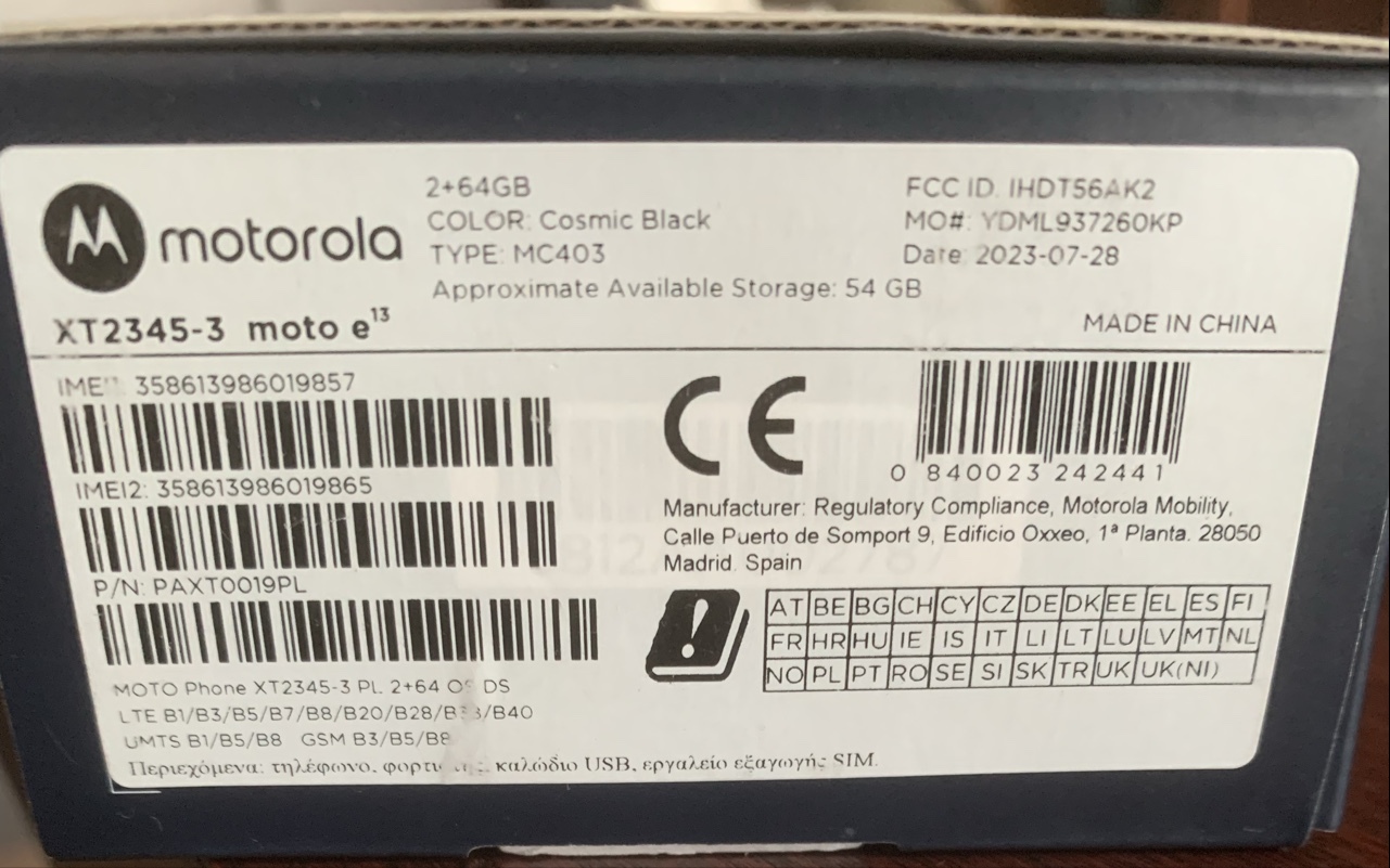 | Model telefonu | Moto E13 |