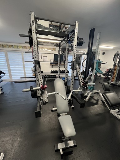 Multi Rack + shmit + Jammer Arms firmy Hes Wrocław to wysokiej klasy klatka treningowa z dodatkami . Rack zaprojektowany na sześciu słupach o profil 70x70x3 mm ,wymiary :
