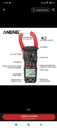 | Pomiar | ciągłość, pojemność, napięcie stałe DC, parametry diody, częstotliwość, rezystancja, prąd przemienny AC, temperatura, napięcie przemienne AC |