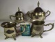 Sprzedam elegancki, dekoracyjny komplet naczyń w stylu barokowo-rokokowym, wykonany z metalu posrebrzanego. Zestaw pochodzi z lat 60–80 XX wieku (PRL / Europa – produkcja powojenna). Idealny do wystroju wnętrz, ekspozycji, fotografii produktowej, restauracji w stylu vintage, a także jako element dekoracyjny salonu lub jadalni.