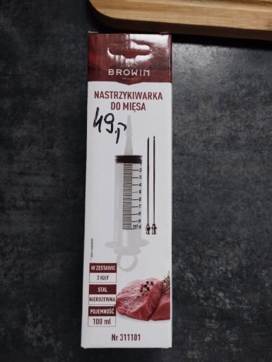 Sprzedam nastrzykiwarke/ strzykawkę do mięsa.Strzykawka użyta tylko raz, więc jest jak nowa.Pojemność 100 ml, 2 igły w zestawie.