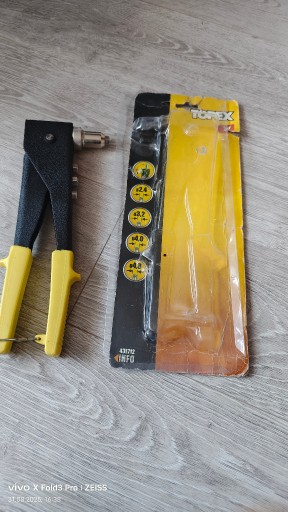 Porządki piwniczne.Kupiona z rok temu .Użyta z 3-4 razy i to cała przygoda z nią.Leży i zagraca miejsce na półce.Używany nitownik do nitów aluminiowych marki Topex. Narzędzie w dobrym stanie technicznym, gotowe do użycia. Idealne do prac blacharskich i montażowych.Nitownica do nitów aluminiowych 2.4/3.2/4.0/4.8 mm, dwupołożeniowa TOPEX