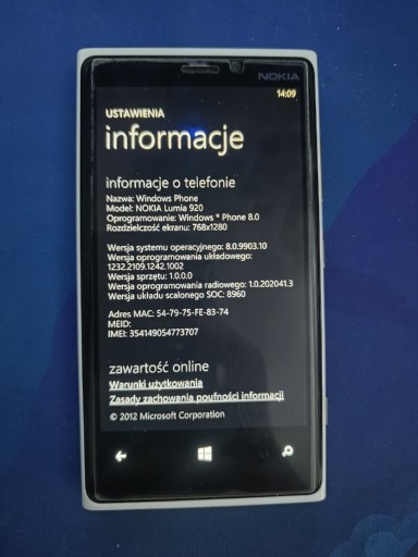 | Model telefonu | Lumia 920 |