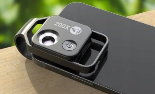 Obiektyw-mikroskop przenośny z 200-krotnym powiększeniem umożliwia obserwowanie oraz zrobienie zdjęć i filmowanie smartfonem w bardzo dużym powiększeniu, najmniejszym elementom, nawet tym, których nie dostrzeżemy gołym okiem.