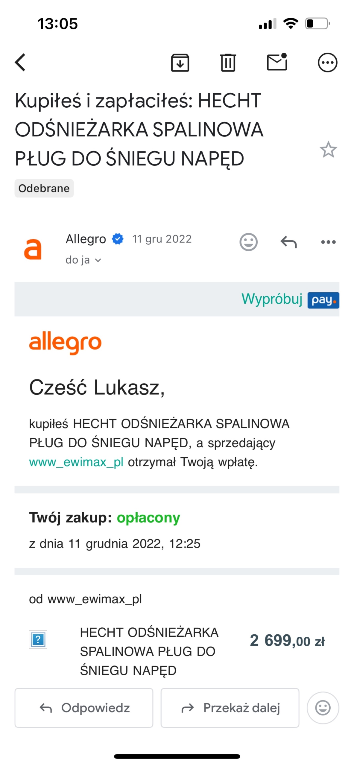 Wybierz kup teraz i w kolejnym kroku dodasz więcej przedmiotów od tego sprzedającego.