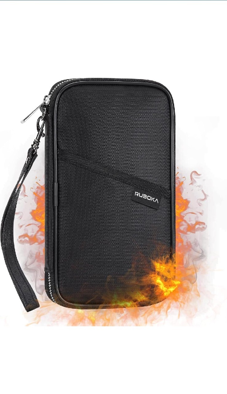 Ruboka Ognioodporny portfel na paszport blokujący RFID (10,9 cm x 21,8 cm), rodzinny pokrowiec na wiele paszportów, wodoodporny, organizer na dokumenty podróżne, torba na karty kredytowe, kopertówka dla mężczyzn i kobiet