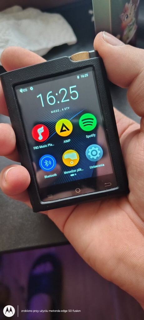Witam na sprzedaż mało używany odtwarzacz w stanie igła. Folia z przodu i z tyłu folia na ekran osobno do naklejenia, skórzane etui, kabelek usb-c. Urządzenie posiada wifi oraz Bluetooth slot microSD potwierdziłem że obsługuje szybkie karty 512gb co przy znakomitej jakości audio daje nieograniczone wręcz możliwości w całości połączenie szkła i aluminium.