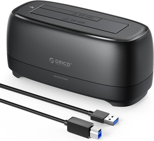 ORICO Stacja dokująca do dysków twardych 3,5", obudowa dysku twardego USB 3.0 do SATA 2,5" i 3,5" HDD SSD z zasilaczem 12 V 2 A, obsługuje dyski UASP i 20 TB (DD18U3), 1 BAY, czarny