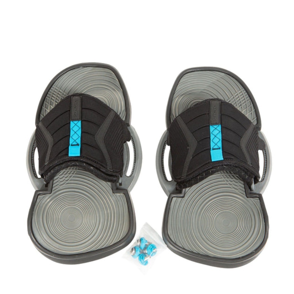 Sprzedam używane okucia z mocowaniami (śrubki+ podkładki regulujące kąt) pasującymi do każdej deski KITESURFING. Daje nowemu właścicielowi dodatkowe twarde gąbki, które zamienia się od spodu pod piętami. Odbiór osobisty w Warszawie lub istnieje możliwość wysyłki po wcześniejszym kontakcie 692_558_940