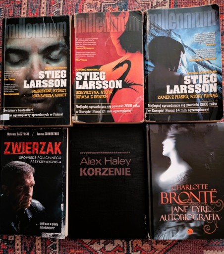 | Tytuł | Stieg Larsson Millennium. Trylogia. PAKIET 3 KSIĄŻEK ,Korzenie - A.Haley,Zwierzak Spowiedź policyjnego przykrywkowca,Jane Eyre Autobiografia - Charlotte Bronte. |