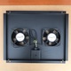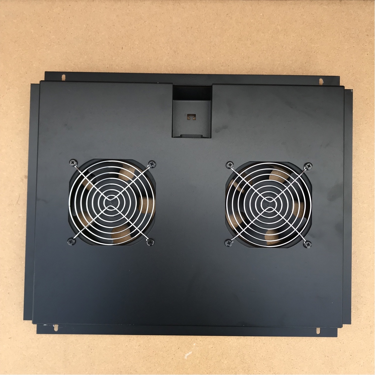 Panel wentylatora jest nieużywany, został wymontowany z szafy która nie doczekała się eksploatacji. Wymiary zewnętrzne ( gabarytowe) panela to 45 x 36,5 cm. Rozstaw otworów 36 x 34,5 cm . Otwór w szafie na panel powinien mieć około 42 x 33 cm . Kierunek przepływu powietrza: od strony kratek w stronę wentylatorów. Przepływ powietrza 390m3/h