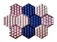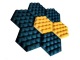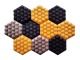 Każdy panel ma kształt heksagonu (plastra miodu) oraz strukturę fali. Panel składa się z płyty Hdf (3 mm), wypełnienia półkolami styropianowymi oraz welurowej tkaniny obiciowej (gramatura 380gr/m2)