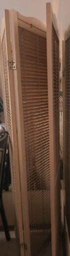 Drewniany ekran działowy: Cały ekran wykonany jest z naturalnej, ekologicznej ramy z litego drewna, polerowanej gładkiej, mocnej i solidnej, odpornej na zużycie, o dużej wytrzymałości, a solidne metalowe zawiasy wydłużają żywotność ekranu.