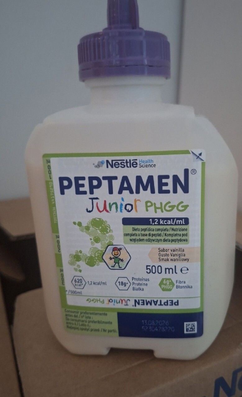Peptamen Junior PHGG to jedyna na rynku dieta dla dzieci i zarowno dla doroslych, oparta na częściowo hydrolizowanym białku serwatkowym, z dodatkiem rozpuszczalnego błonnika PHGG.