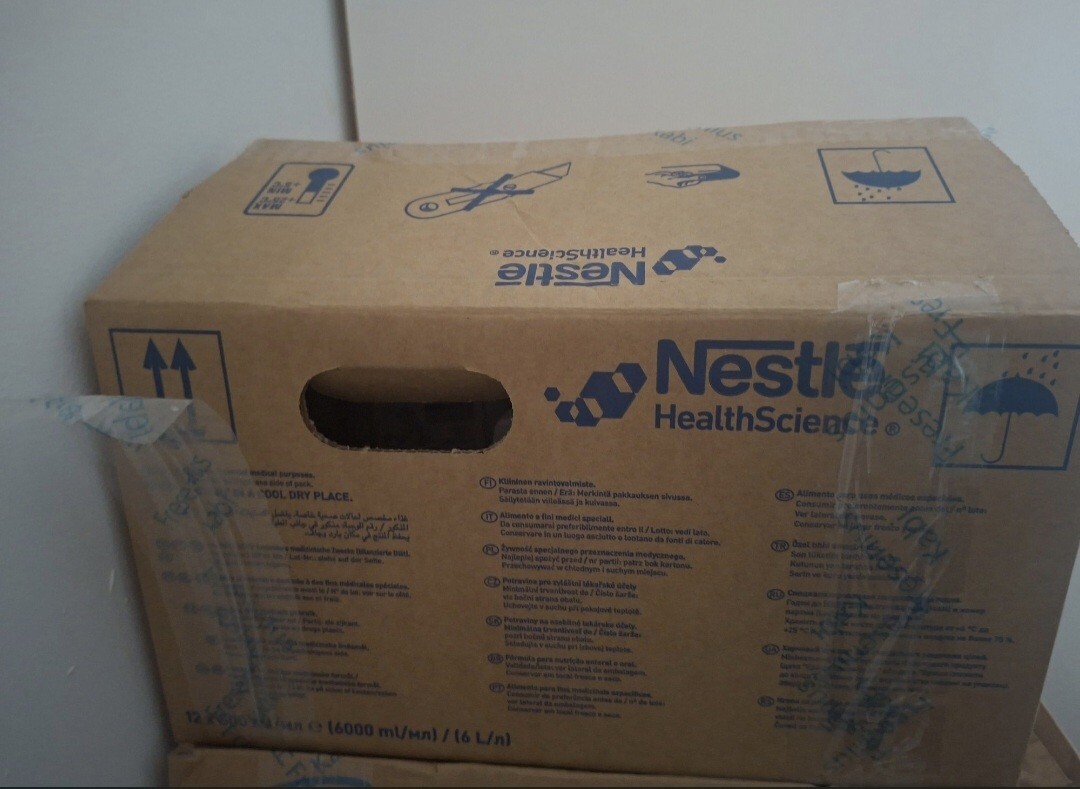 Woda, maltodekstryna, hydrolizowane białko serwatkowe (z mleka), trójglicerydy średniołańcuchowe (MCT) w postaci oleju, sacharoza, olej roślinny (sojowy), błonnik (częściowo hydrolizowana guma guar), składniki mineralne (fosforan wapnia, chlorek magnezu, chlorek potasu, chlorek sodu, fosforan potasu, cytrynian potasu, fosforan sodu, cytrynian wapnia, tlenek magnezu, mleczan żelaza (II), siarczan cynku, glukonian miedzi (II), siarczan manganu, fluorek sodu, jodek potasu, chlorek chromu (III), selenian sodu (IV), molibdenian (VI) sodu), emulgatory (lecytyna sojowa, E471), olej rybi, substancja zagęszczająca (E412), dwuwinian choliny, aromat, witaminy (C, E, niacyna, kwas pantotenowy, B6, tiamina, ryboflawina, A, kwas foliowy, biotyna, K, D, B12), regulator kwasowości (E525), tauryna, stabilizator (karagen), L-karnityna, inozytol. Produkt bezglutenowy. Sterylizowany UHT. Pakowany w atmosferze ochronnej.