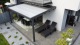 Składane zadaszenie dużej powierzchni tarasu lub ogrodu restauracji. Minimalistyczny design bez widocznych śrub i elementów mechanicznych. Pergola działa również w trudnych warunkach atmosferycznych.