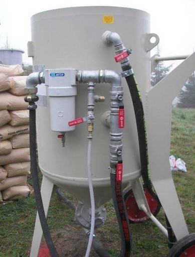 Piaskarka 200 L wyposażona w profesjonalny odwadniacz oraz zawór talerzowy Clemco (Nie żadne Chińskie podróbki - można zasypać polgrit, piasek, śrut, jet garnet, mikro kulki szklane, elektrokorund, łupiny orzechów, żużel po miedziowy)