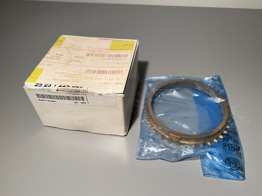 Na sprzedaż mam NOWY pierścień synchronizatora pierwszego oraz drugiego biegu o numerze katalogowym 23 23 1 224 325. Dzisiaj jest on niedostępny w ASO, bez możliwości zamówienia zamiennika.