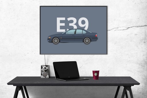 Plakat przedstawiający kultowe BMW serii 5, model E39.