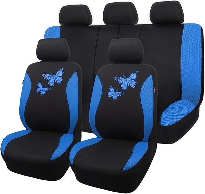 Pokrowce na fotele samochodowe Flying Banner z oddychającej siateczki, kolorowy wzór motyli, kompatybilne z poduszką powietrzną