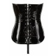 Fiszbiny w gorsecie zapewniają idealne dopasowanie, a sznurowanie z tyłu jest prawdziwym dopełnieniem. Strój uzupełniają zamknięte czarne błyszczące stringi z winylu.