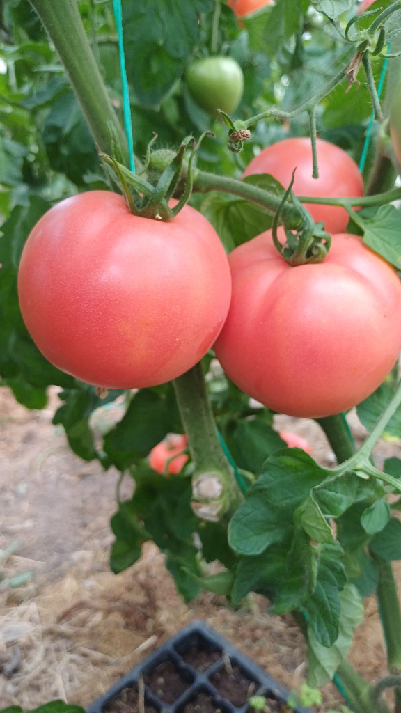 Ta partia pochodzi z pomidora Maneymaker. Odmiana odporna i bardzo plenna . Odmiana wysoka o nieustannym wzroście . Owoce malinowe idealnie okrągłe. Odmiany średnio owocowe mają duże nasionka dlatego nadają się dla większych rybek .