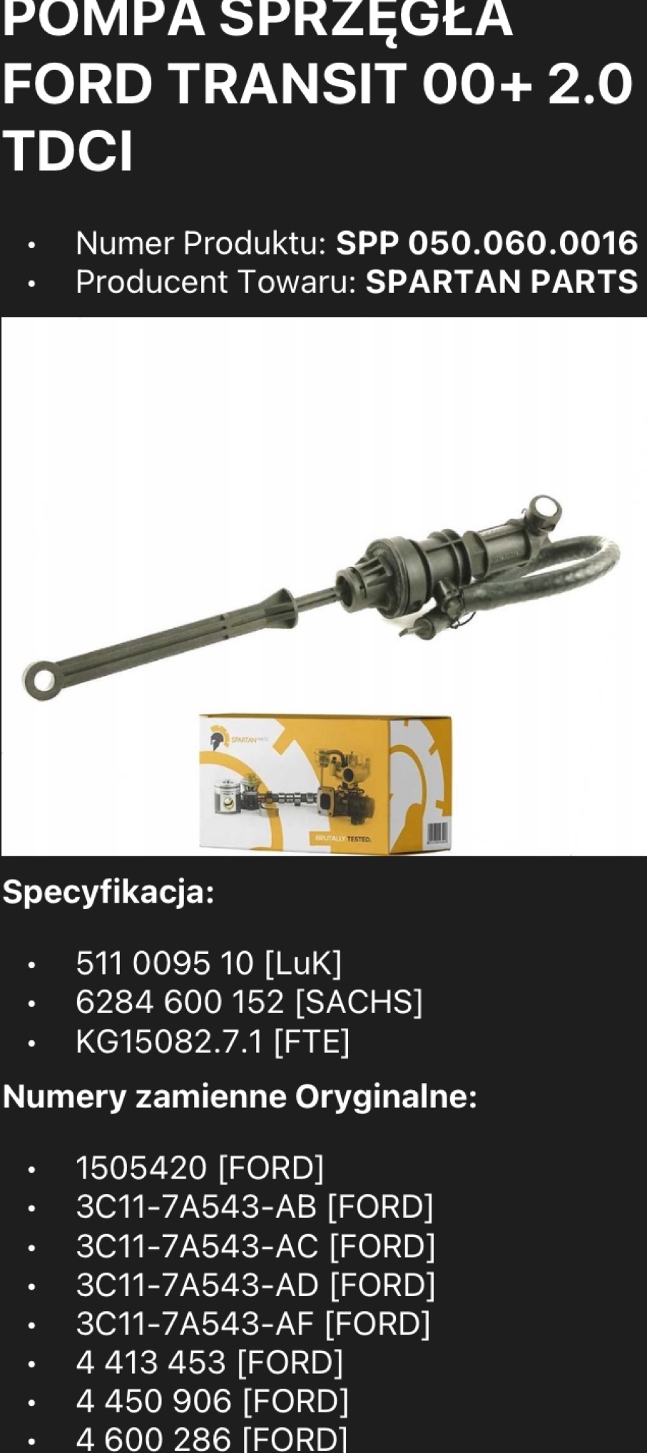 | Jakość części (zgodnie z GVO) | P - zamiennik o jakości porównywalnej do oryginału |