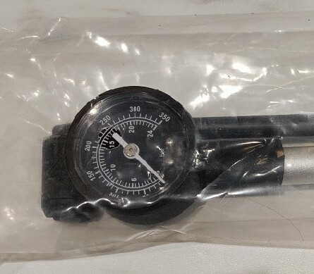 Nowa, nie używana, nie wyjęta z foli pompka do amortyzatorów rowerowych.