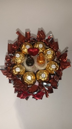 Oferuję torcik ze słodyczy konafeto i ferrero rocher z okazji urodzin który z pewnością sprawi przyjemność obdarowanej osobie. Przy zakupie prezent pakowany jest w folię.