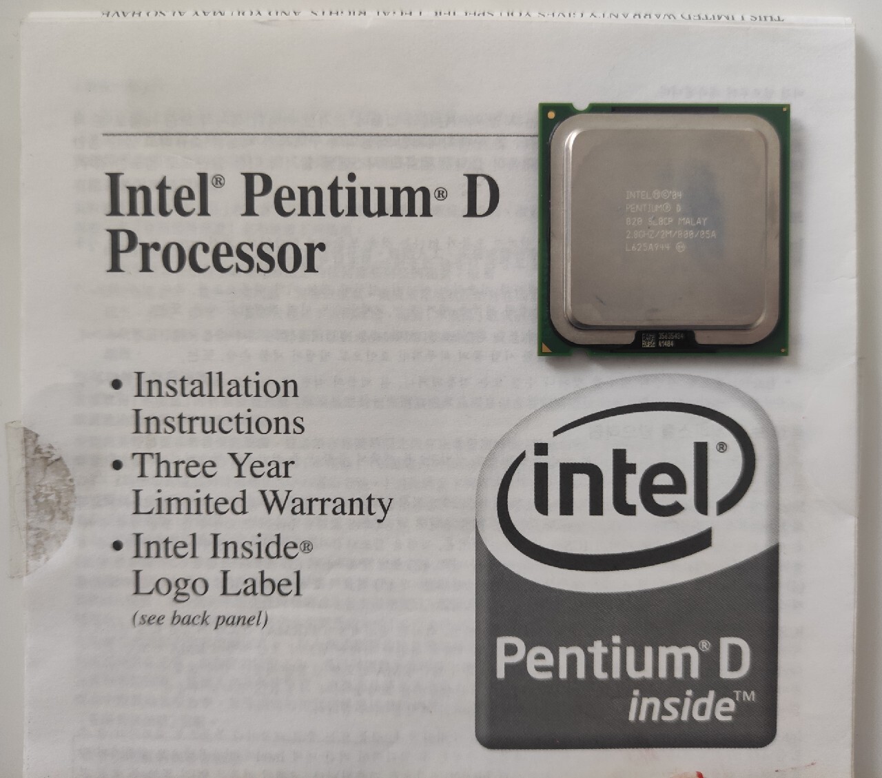 | Model procesora | Pentium D 820 |