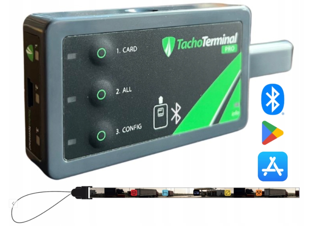 TachoTerminal Pro 3 to najnowsza generacja popularnego czytnika kart kierowców i tachografów cyfrowych, stworzona z myślą o jeszcze większej wygodzie i mobilności użytkowników. Urządzenie zostało wyposażone w moduł Bluetooth, który – w połączeniu z dedykowaną aplikacją mobilną – umożliwia bezprzewodowy transfer danych do smartfona lub tabletu.