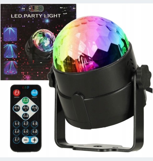 Posiada czujnik dźwięku, dzięki czemu efekty świetlne dostosowują się do rytmu muzyki.