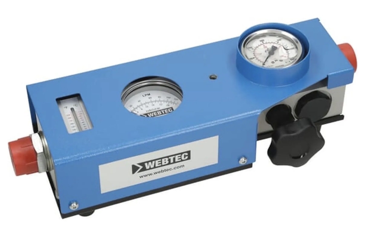 Informacje techniczne: Opis: Przepływomierze RFIK są dostosowane do ciągłego lub chwilowego monitoringu układów hydraulicznych. Zestaw pozwala na testowanie pomp, silników, zaworów i siłowników oraz kompletnych układów hydraulicznych. Zawór obciążający w kombinacji z manometrem pozwalają na bezpieczne podwyższanie ciśnienia w układzie. Zastosowanie: Hydraulika mobilna oraz przemysłowa. Cechy: pomiar przepływu, ciśnienia, temperatury płynna kontrola ciśnienia do 420 bar możliwy przepływ w obu kierunkach, pomiar w jednym kierunku zabezpieczenie w obu kierunkach systemem INTERPASS dokładność pomiaru przepływu: +/-4 % FS dokładność pomiaru ciśnienia: +/-1,6 % FS dokładność pomiaru temperatury: 2 ºC