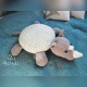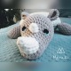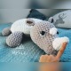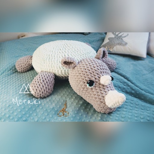 Pufa nosorożec wykonana została na szydełku z miękkiej puszystej włóczki.