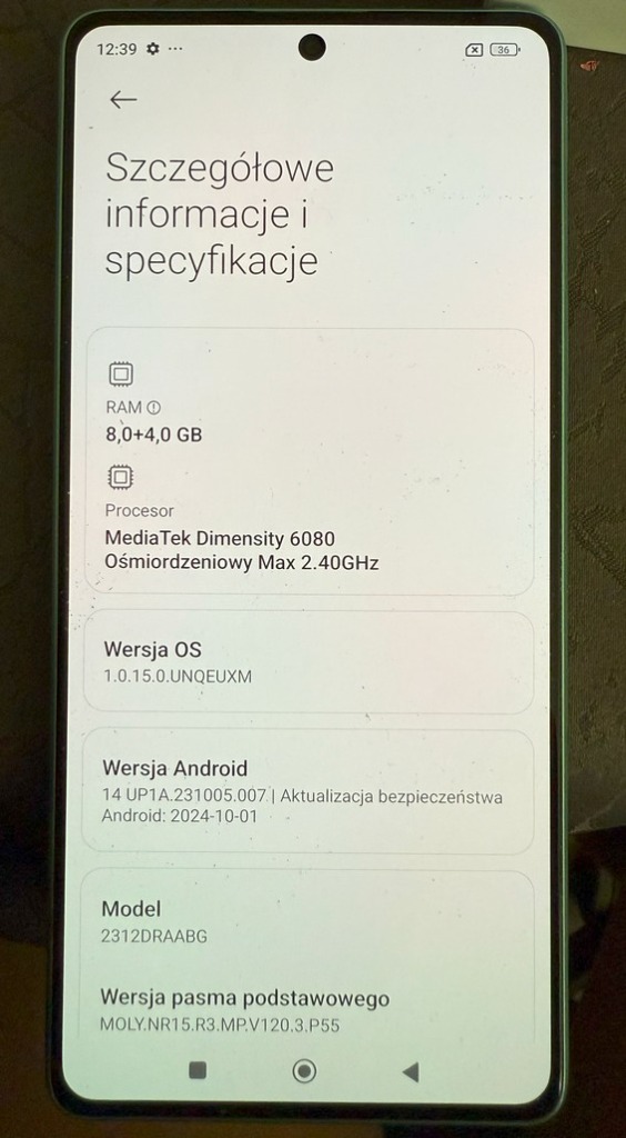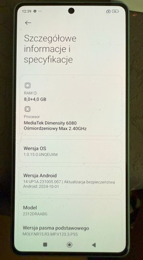 | Wersja systemu operacyjnego | Android 14 |