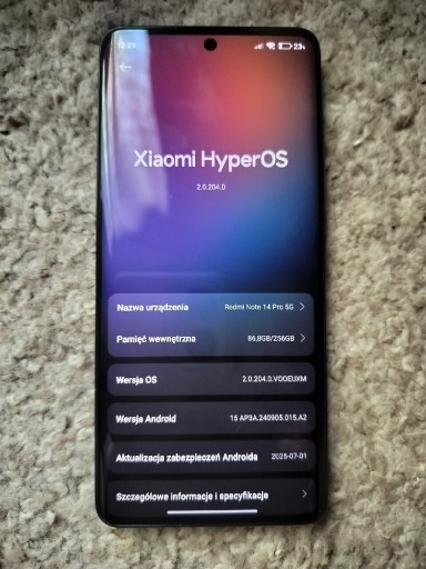 | Model telefonu | Redmi Note 14 Pro 5G |