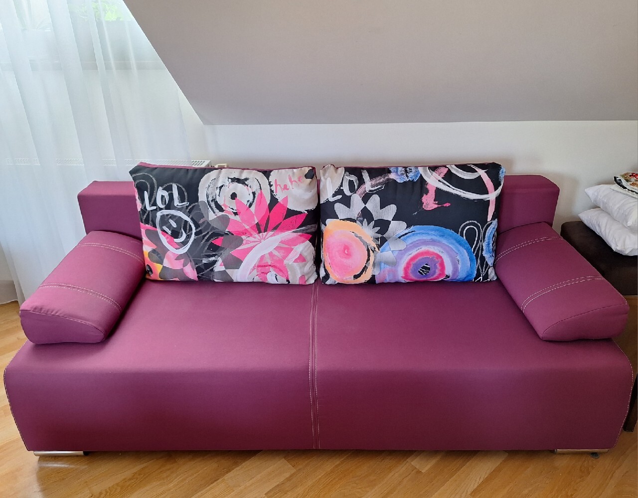 | Informacje dodatkowe | funkcja spania, na niskich nóżkach, ze schowkiem, pojemnik na pościel, z poduszkami na/jako oparcie |