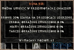| Nazwa przedmiotu | Diablo 2 Resurrected Runa Ber D2R Postać Rankingowa |