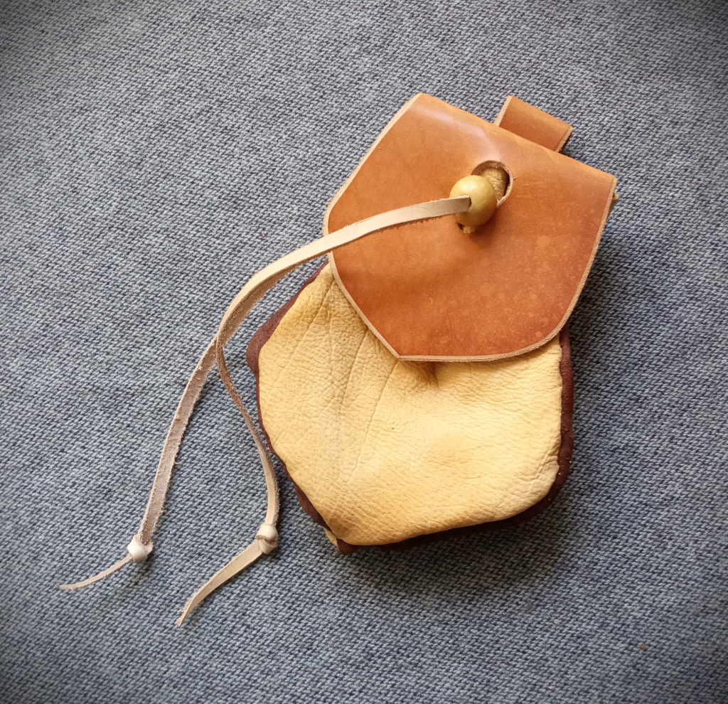 Prosta, zwyczajna, średniowieczna sakiewka do przenoszenia przydasiów.