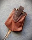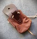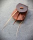 Szyta ręcznie, z naturalnych skór - brązowa z jelenia ok 1,5 mm grubości oraz garbowana roślinnie skóra bydlęca. Guziczek ze skóry.
