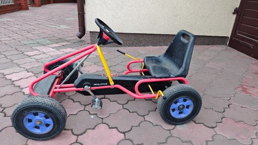 Na sprzedaż samochodzik/gokart. Napęd na pedała, automatyczne przełączania przód-tył. Pedałujemy do przodu jedzie do przodu, pedałujemy do tyłu jedzie do tyłu. Nosi ślady normalnego użytkowania sprawny w 100%.
