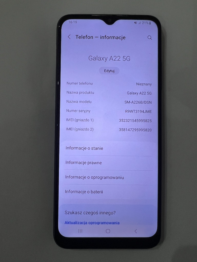 | Model telefonu | Galaxy A22 5G |