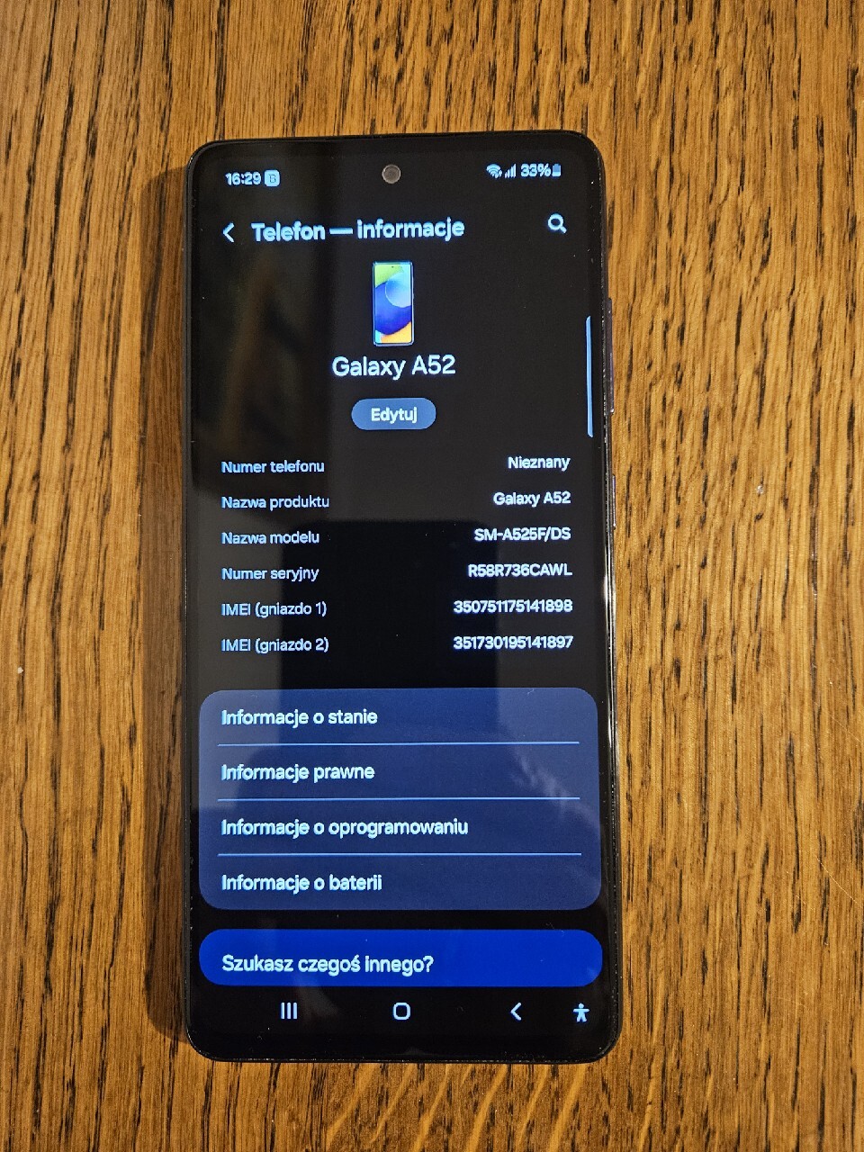 | Model telefonu | Galaxy A52 |