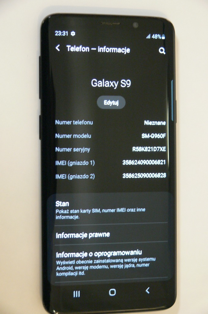 | Model telefonu | Galaxy S9 |