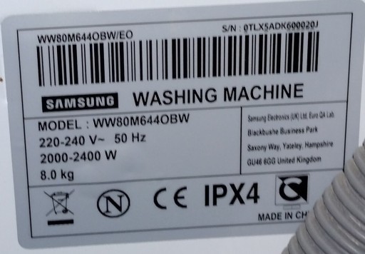 | Kod producenta | Samsung WW80M644OBW/EO |