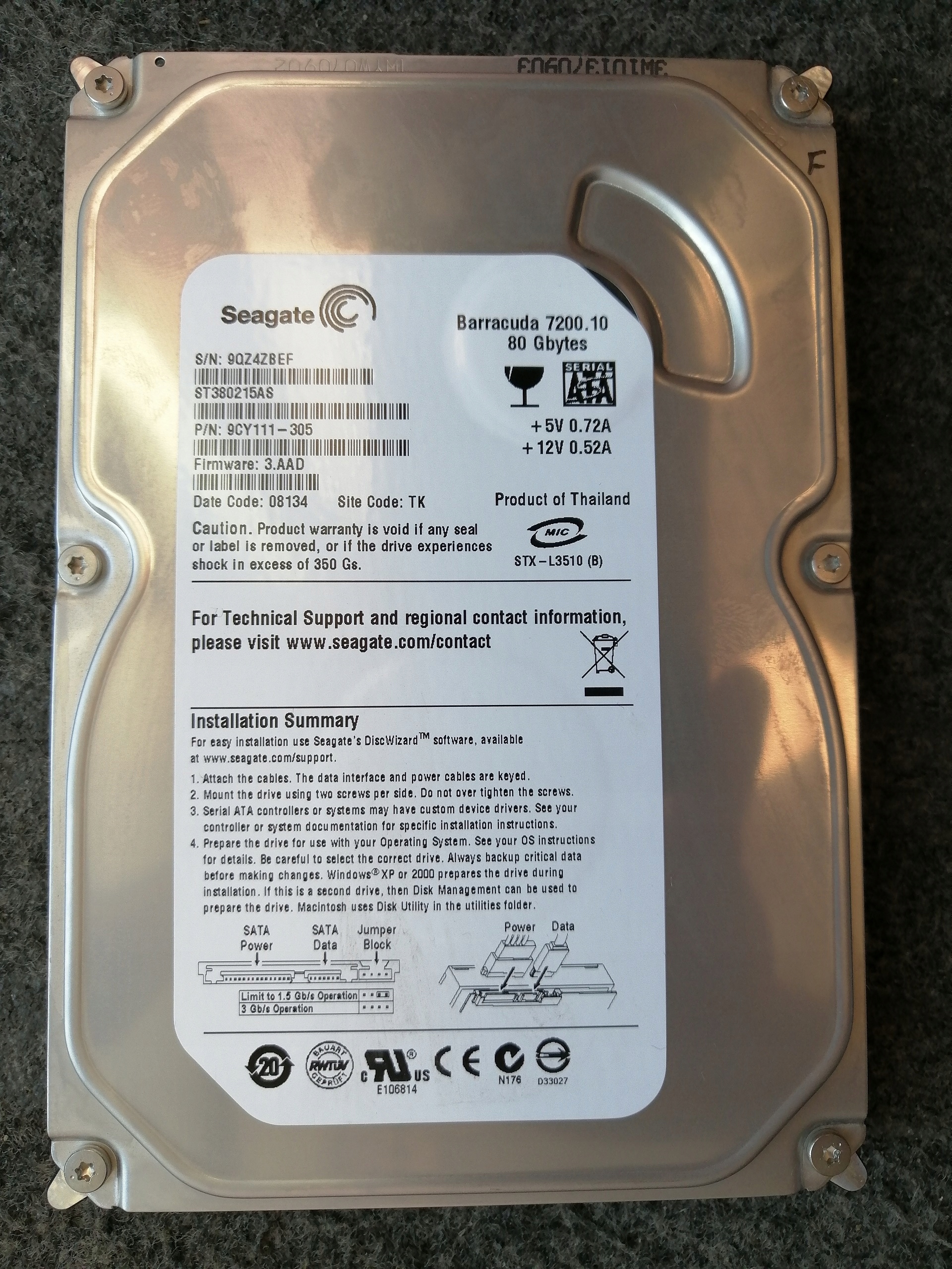 | Kod producenta | ST380215AS |