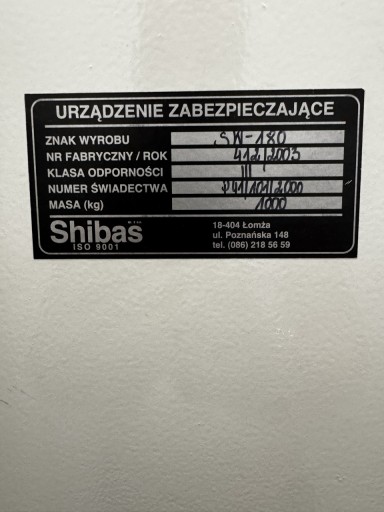 | Przeznaczenie | kasa pancerna, na pieniądze |